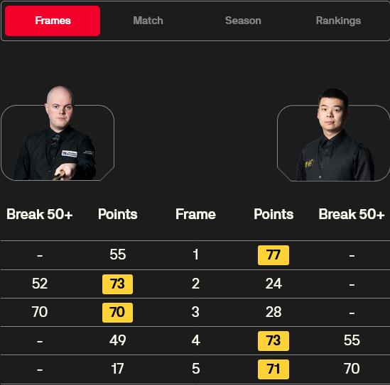 半决赛中,庞俊旭凭借2杆50+,大比分3-2逆转慑服相通打出2杆50+的斯莱塞,晋级决赛;“囧哥”则是凭借1杆50+,大比分3-2险胜打出2杆60+的克雷吉,晋级决赛。